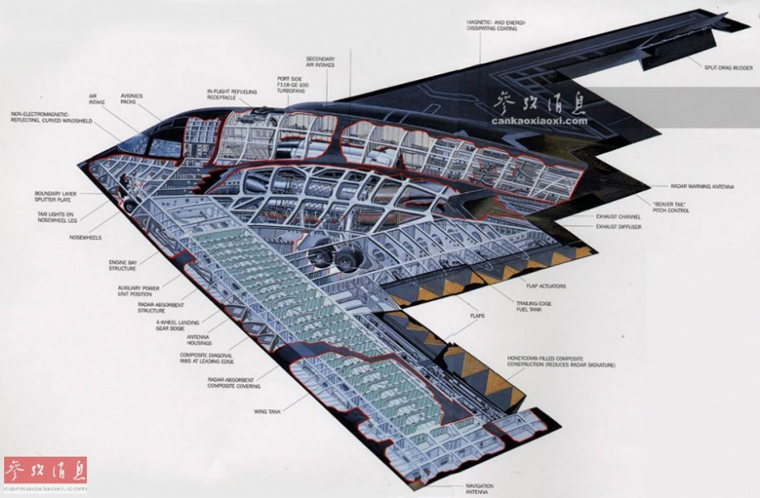 美军B-2隐身轰炸机。