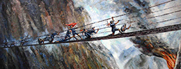 81年前,大渡河畔,由北伐“铁军”改编的红二师四团22位勇士手握驳壳枪、肩背大刀,冒着枪林弹雨,通过13条锁链飞夺泸定桥,为危境中的红军杀开一条血路。
