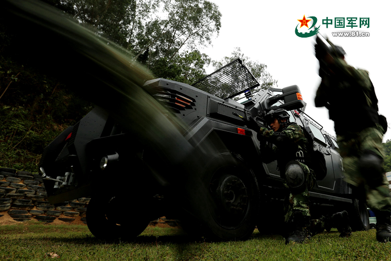 10月18日上午,武警广东边防总队机动支队反恐中队官兵在深圳最高峰梧山上,进行了一场以“丛林缉毒”为背景的实战演练。