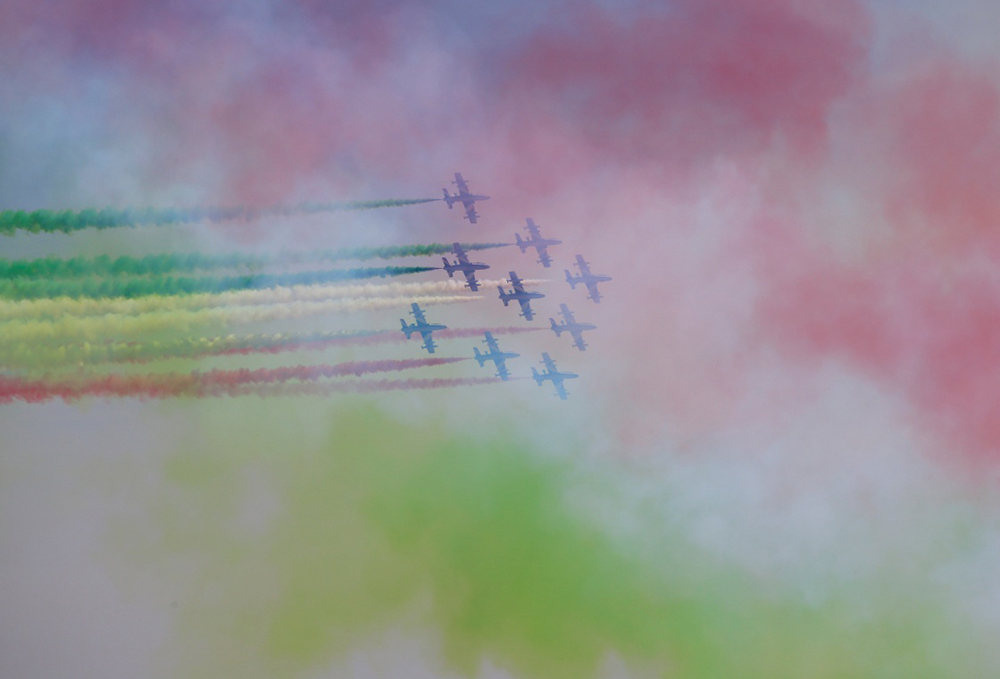 意大利庆祝共和国日 特技飞行队空中炫技