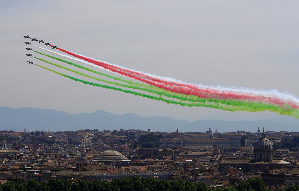 意大利庆祝共和国日 特技飞行队空中炫技