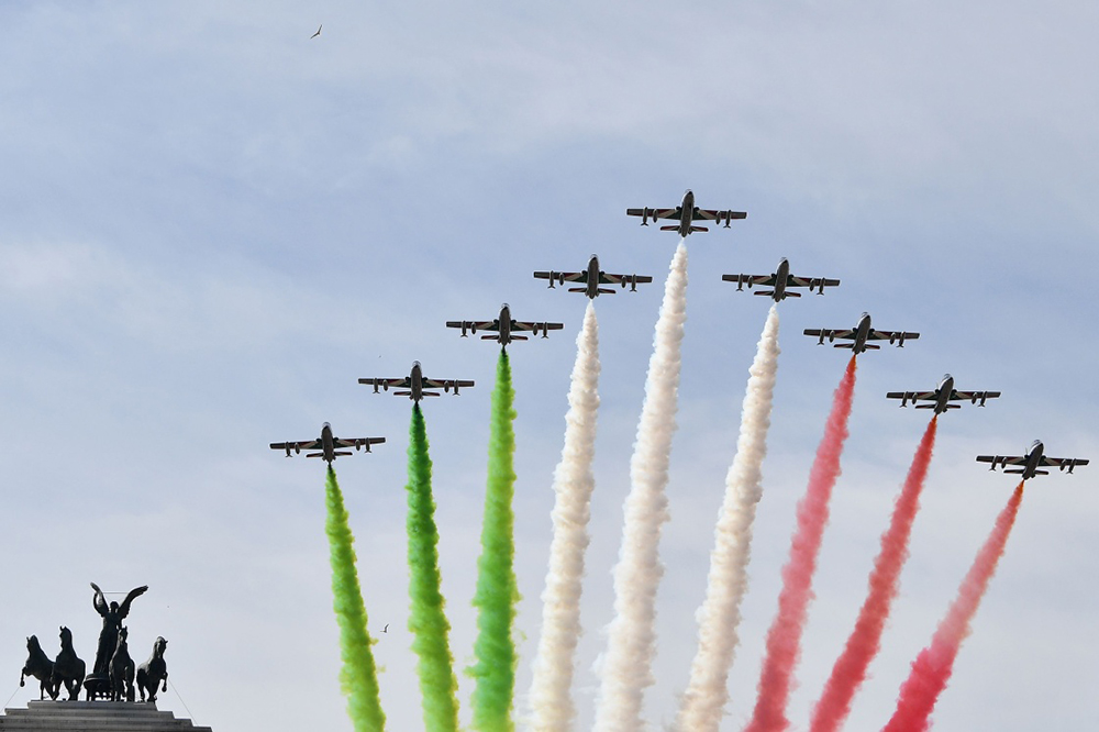 意大利庆祝共和国日 特技飞行队空中炫技