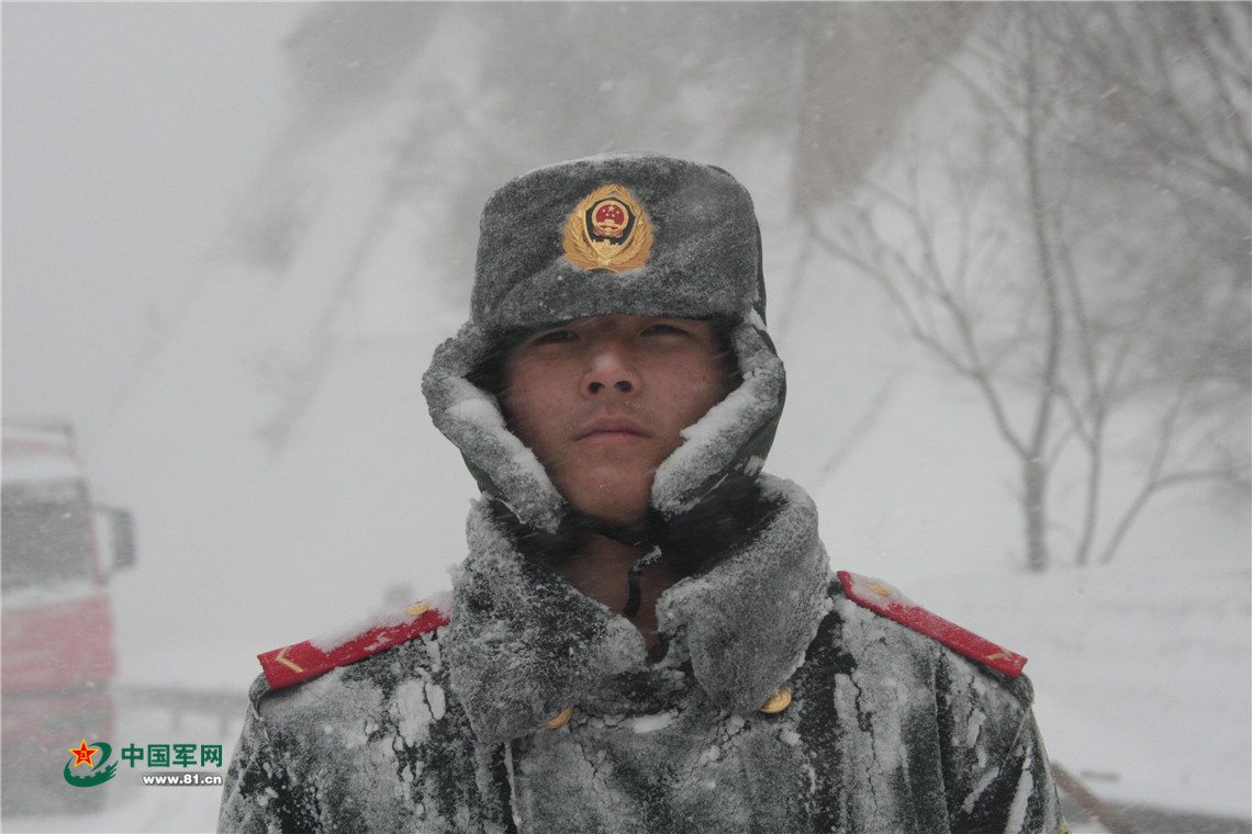 风雪中的战士。李光印 摄