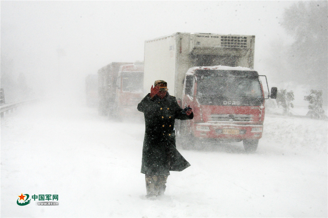 风雪中,最可爱的人来了。李光印 摄
