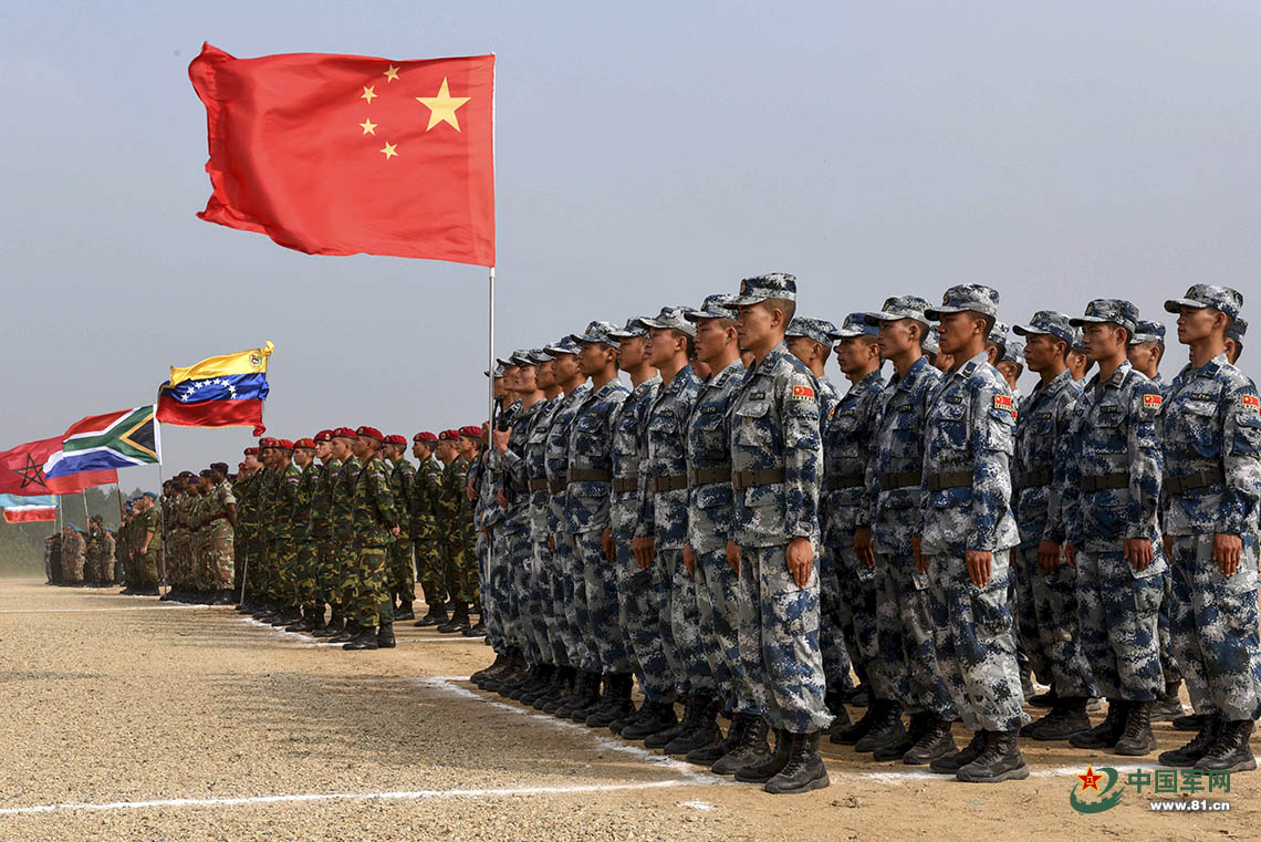 “国际军事比赛-2017”,中国湖北广水,中国空军承办的“空降排”比赛开幕,这是各国参赛队员方阵。沈玲 摄影