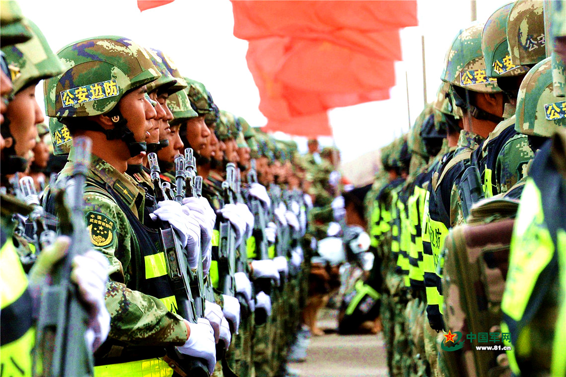 2017年6月27日,“天山-3号(2017)”联合反恐演习,武警边防官兵列队整装待发。王小雪 摄影