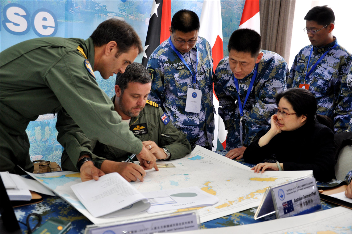 12月6日,“合作精神-2017”人道主义救援减灾联合室内推演拉开帷幕,这是澳方指挥所在展开推演。新华社记者 梅常伟 摄影