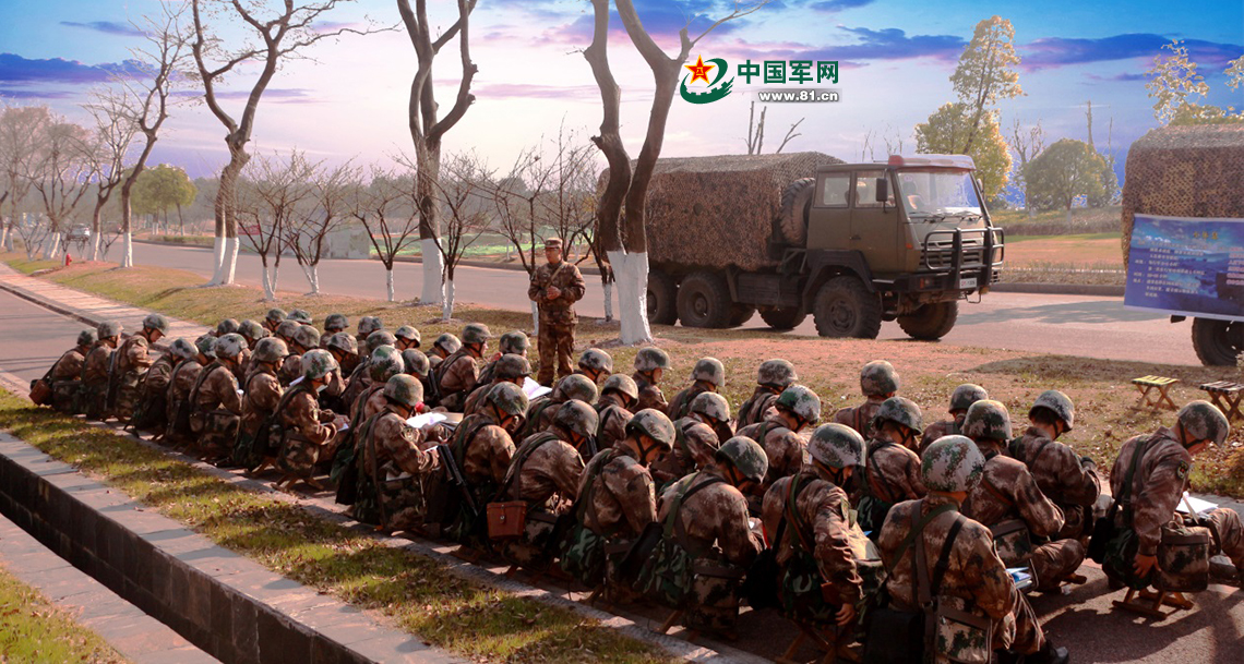 在路边,教员组织学员们学习理论知识,就地展开作业。