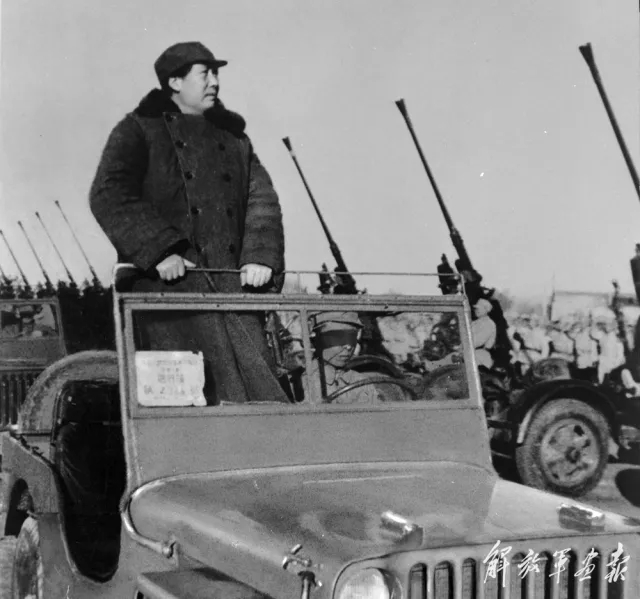 1949年3月,毛泽东检阅我军第一支高炮部队 。(刊登于1952年8月第17期《解放军画报》)