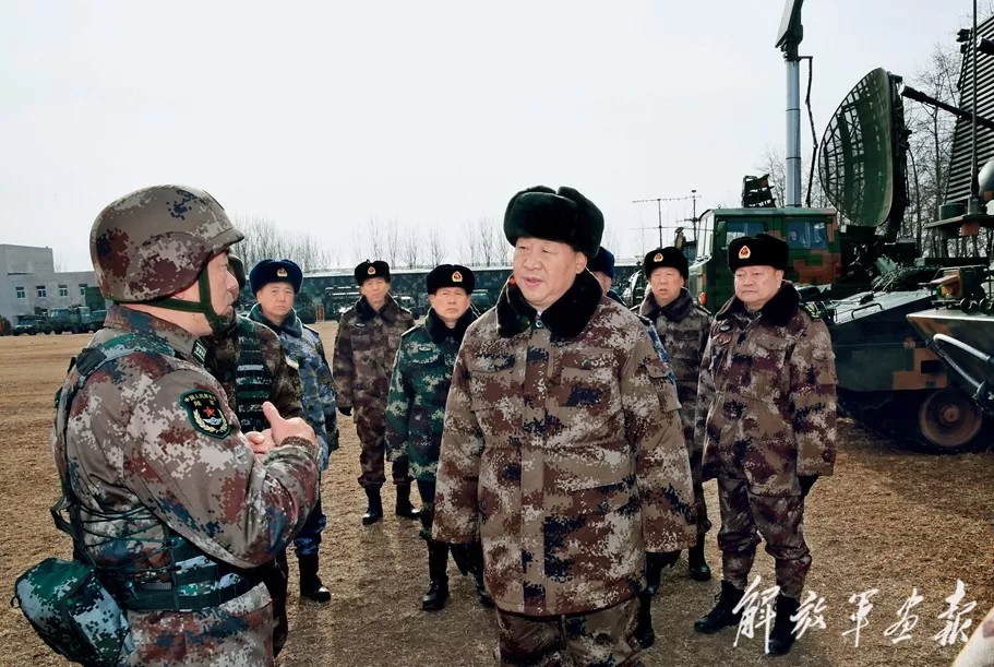 1月3日,中共中央总书记、国家主席、中央军委主席习近平视察中部战区陆军某师。他首先察看了部队武器装备。数十台套数字化装备整齐列阵,威风凛凛,习近平边走边看,不时驻足询问。