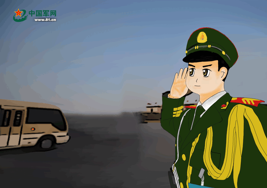 我是负责两会站岗的武警战士,前面的车里是参加会议的代表委员们。车来了,敬礼!