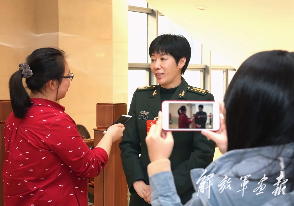 3月12日下午,全国政协十三届一次会议小组会议间隙,军队政协委员王恋英接受记者采访。