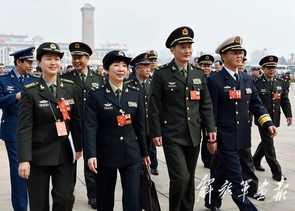 3月14日,全国政协十三届一次会议第四次全体会议在北京人民大会堂举行,选举政协第十三届全国委员会主席、副主席、秘书长和常务委员。图为军队政协委员意气风发。