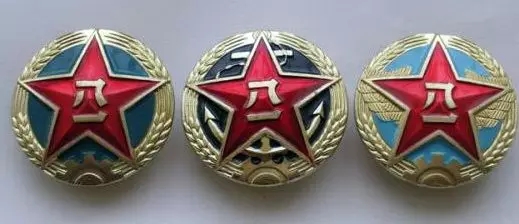 大檐帽帽徽与55式相同,为圆形,中央镶嵌“八一”军徽,外围为金黄色麦穗和齿轮,帽徽底衬陆军海蓝色,海军黑色和金黄色铁锚,空军天蓝色和金黄色飞翅。帽徽的缀钉部位与55式不同,缀于帽瓦正中。