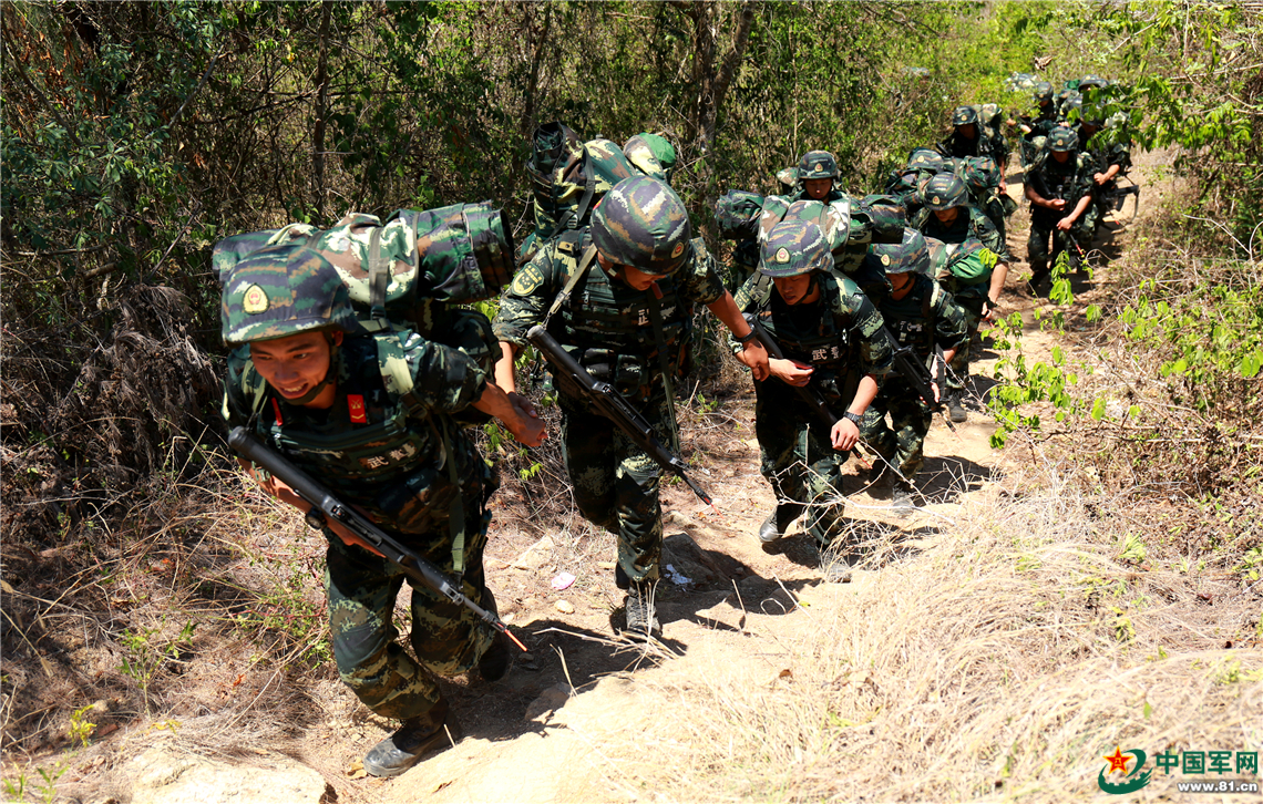 特战队员每人都要负重近30公斤,每天徒步近30公里,还要处置随机出现的各种情况,完成高难度科目。 周奕 摄