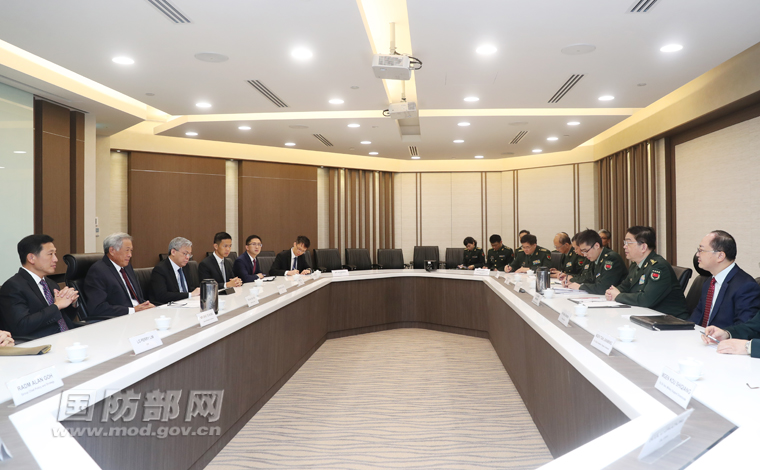 2月5日上午,正在新加坡进行正式访问的国务委员兼国防部长常万全与新加坡国防部长黄永宏举行会谈。李晓伟 摄