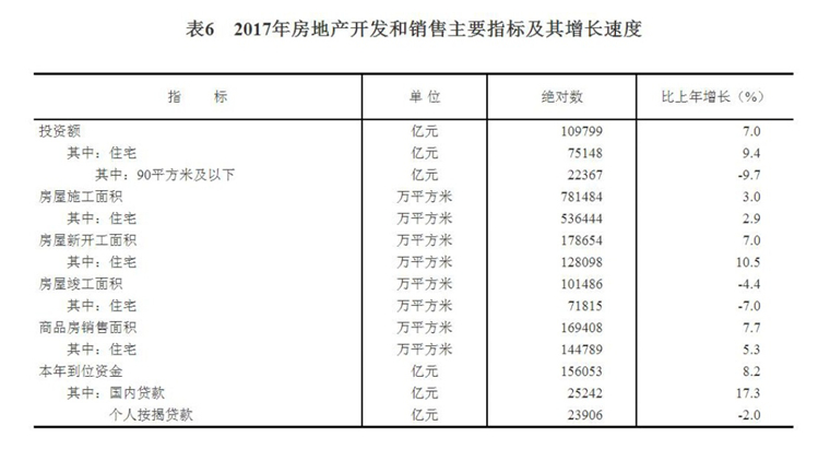 全年房地产开发投资109799亿元,比上年增长7.0%。其中住宅投资75148亿元,增长9.4%;办公楼投资6761亿元,增长3.5%;商业营业用房投资15640亿元,下降1.2%。
