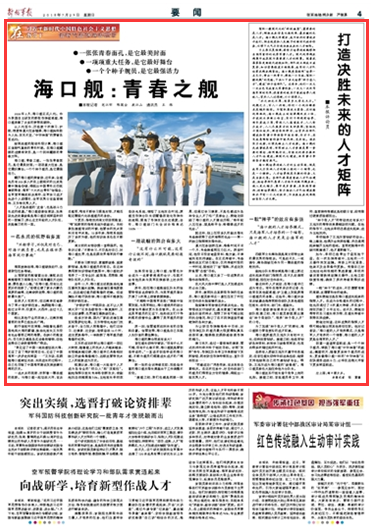 海口舰培养造就人才的生动实践,既是我军大力实施人才战略工程的一个缩影,也是一个榜样。人才培养既是长期的任务,又是当务之急。各部队要高度重视人才队伍建设,把培养部队急需人才作为战略问题来抓,投入更大精力,集中更多资源,采取超常措施,创新培养模式,努力推动人才队伍建设整体水平有一个大的跃升,为决胜未来战场提供坚实人才支撑。