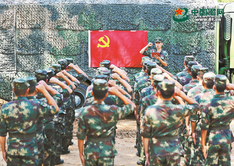 火箭军某导弹旅官兵在阵地前开展宣誓、火线入党等活动。宋 波摄