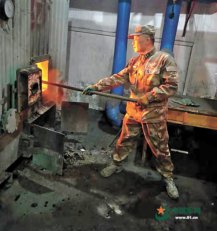 红柳滩兵站上士班长马有和连夜加煤烧锅炉保障过往部队。熊 超摄