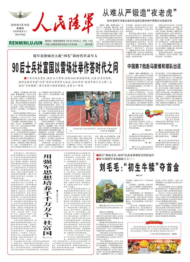 人民陆军报《90后士兵杜富国以雷场壮举作答时代之问》
