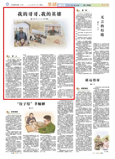 那天,结束期末考试的我狂奔出学校,可在约定好的地方等我的不是妈妈,而是姨妈。上车前,姨妈好像想对我说什么,但明显感觉话到嘴边,又咽下去了。我拨通妈妈的电话,刚准备开口问问情况,妈妈在电话那头已经泣不成声,只听爸爸的声音传来:“你哥牺牲了。”