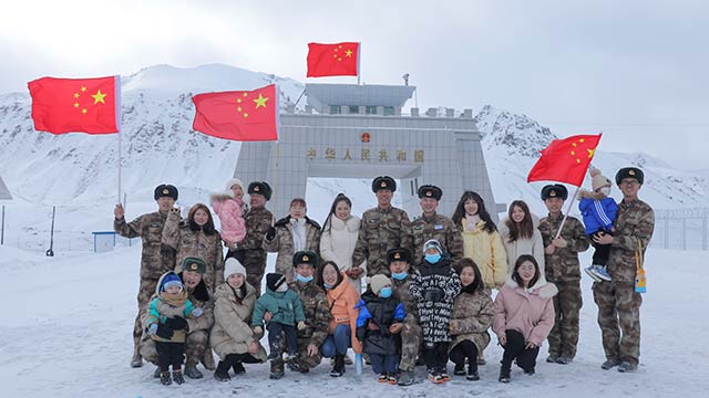 新疆军区某边防团组织26名官兵军属来到边关一线,了解戍边军人巡逻日常,感受祖国壮美山河。