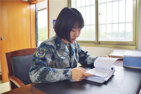 作为我所在场站招录的第一批文职,我感受着和军人一样的荣耀和责任。强国强军的征途上,不乏我们文职人员奋斗的身影。幸而生在这个时代,幸而有文职招考,我才如愿像父辈一样来到军营、踏上军旅。尽管不是现役,但我们身在同一片军营,穿着同样的迷彩。“孔雀蓝”,我因你圆梦、为你骄傲!