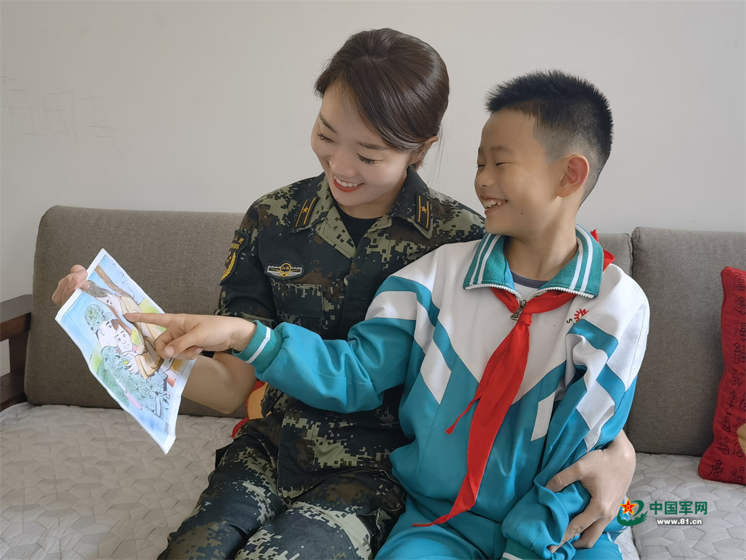 武警山西总队长治支队某部干事赵娜与儿子。(赵娜 供图)