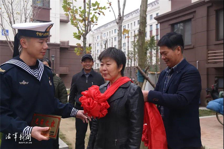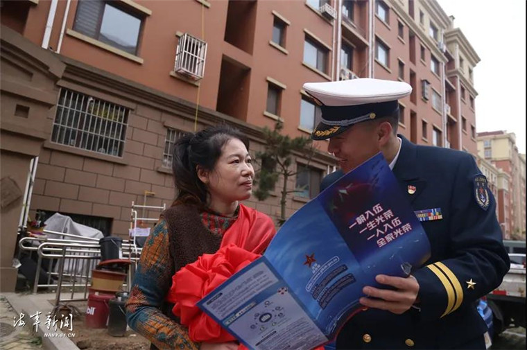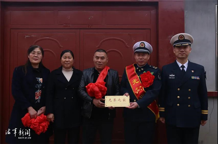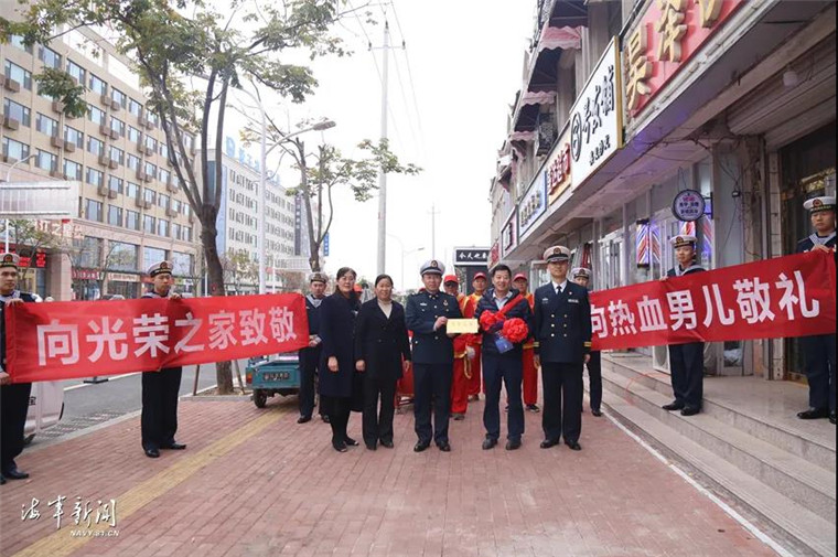 日前,北部战区海军某舰船装备技术保障大队组织退伍老兵和部分官兵代表与驻地政府一起为新兵家庭送去“光荣之家”门牌。