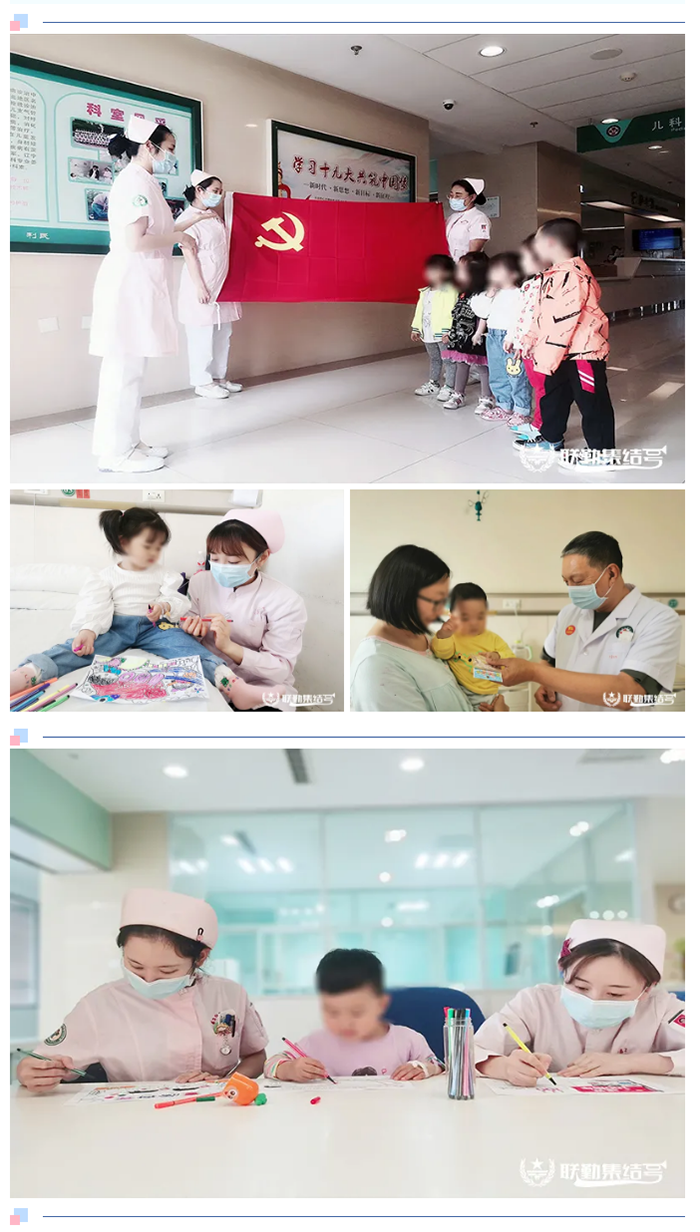 北部战区总医院儿科开展了以“童心向党,健康成长”为主题的绘画活动。在科室李奇玉主任带领下,医护人员为孩子们采购了缤纷多彩的画笔、纸张,并为每一名住院的孩子送上节日纪念品。在儿科病区内,医护人员向孩子们展示了红红的党旗,为他们讲述党旗的由来。小手拉大手,孩子们在护士阿姨的陪同下,手执画笔,画出他们眼中多彩的世界,画出他们的梦想与希望。小朋友们在欢乐愉快的气氛中,度过了一个难忘的儿童节。