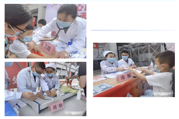 在门诊楼前的广场,一场义诊活动在儿科医护团队们的精心筹备下展开。他们为前来问诊的小朋友们细心诊疗,耐心指导家长及小朋友们在日常生活中如何预防疾病,并向前来咨询的一百多名小朋友们发放了精美的儿童保健手册。