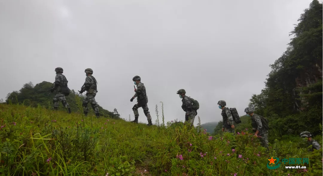 南部战区陆军某边防连官兵巡逻边防线