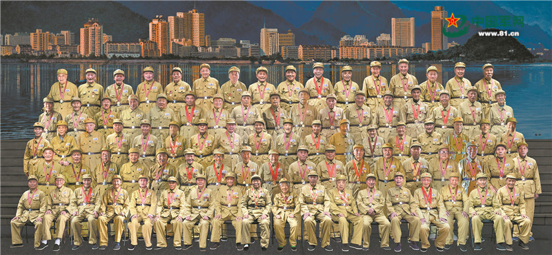 87名耄耋老兵身穿志愿军军服,胸前佩戴着“中国人民志愿军抗美援朝出国作战70周年”纪念章,以这种特殊的方式穿过曾经的战火,跨过漫长的岁月,重新“团聚”在一起。