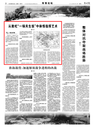 淮海战役中,人民解放军以自身60万对敌80万,硬是吃下了“一锅夹生饭”,创造了以少胜多的经典战例,为加速全国解放进程奠定了坚实基础。深刻体悟我军在淮海战役中的高超谋略与指挥艺术,对指挥员提升联合作战指挥能力大有裨益。