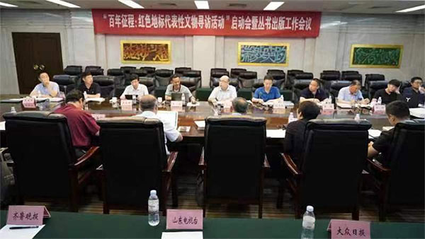 7月30日下午,“百年征程:红色地标代表性文物寻访活动”启动会暨丛书出版工作会议在山东济南举办。来自全国各地的30余位参与文物调研活动的专家、学者和新闻媒体采编人员,通过“线上+线下”相结合的方式参加了会议。