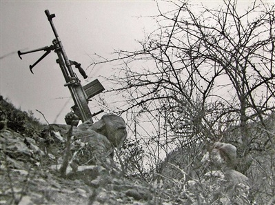 我志愿军战士向敌飞机射击