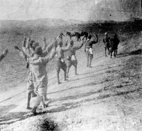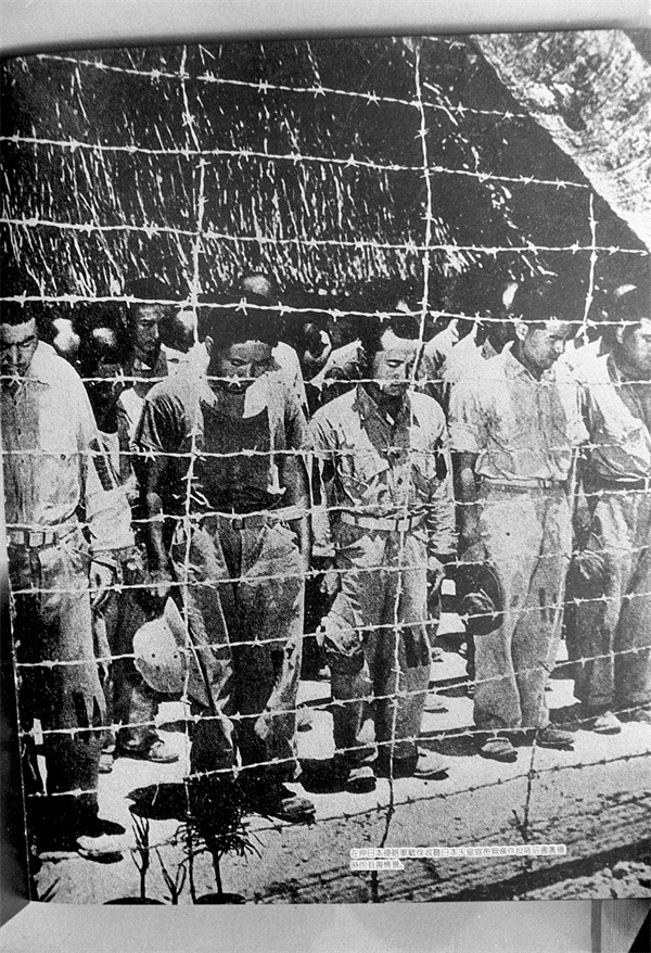 日军战俘听到日本政府宣布无条件投降的消息时个个垂头丧气。