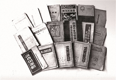 抗日战争和解放战争中,报社出版印刷的部分书籍。资料照片