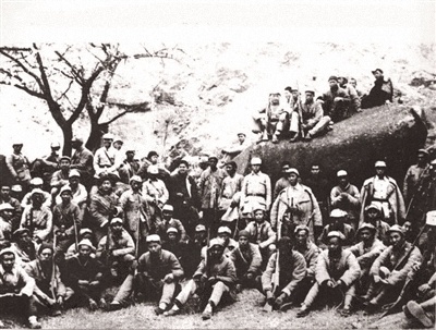 1943年反“扫荡”作战前,报社成员进行军事训练。资料照片