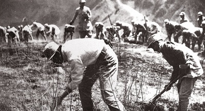 整个大生产运动都是在频繁的战斗中进行的,对敌斗争不仅没有停止,反而更加尖锐。第32团开荒时,一周内打了6仗。第769团在开荒中作战20余次,敌人来了就打、打退了敌人就生产。游击区的部队在流动性大的情况下也不忘生产,他们创造了“点滴生产”“飞行生产”“隐蔽生产”“军民合种”等多种方式。有些深入敌占区的武工队,甚至能在敌据点附近种地。这一年,仅冀南部队就进行大小战斗4000余次。其中,我军主动向敌发动攻击1800余次,反“扫荡”、反袭击和反抢粮等作战近2000次,共计毙伤日伪军8000余人。