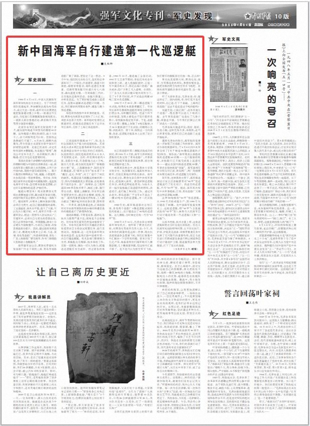 强军文化专刊·军史发现丨新中国海军自行建造第一代巡逻艇