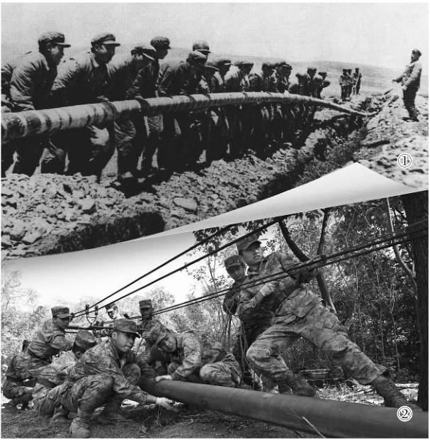 图①:上世纪70年代,联勤保障部队某大队前身部队官兵在高原地区建设格拉输油管线。资料图片