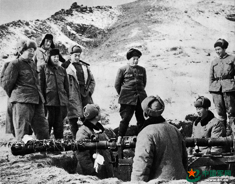 1952年1月6日,中国人民志愿军司令员彭德怀在朝鲜前线视察某高射炮阵地时与指战员们畅谈的情形。林杨 摄