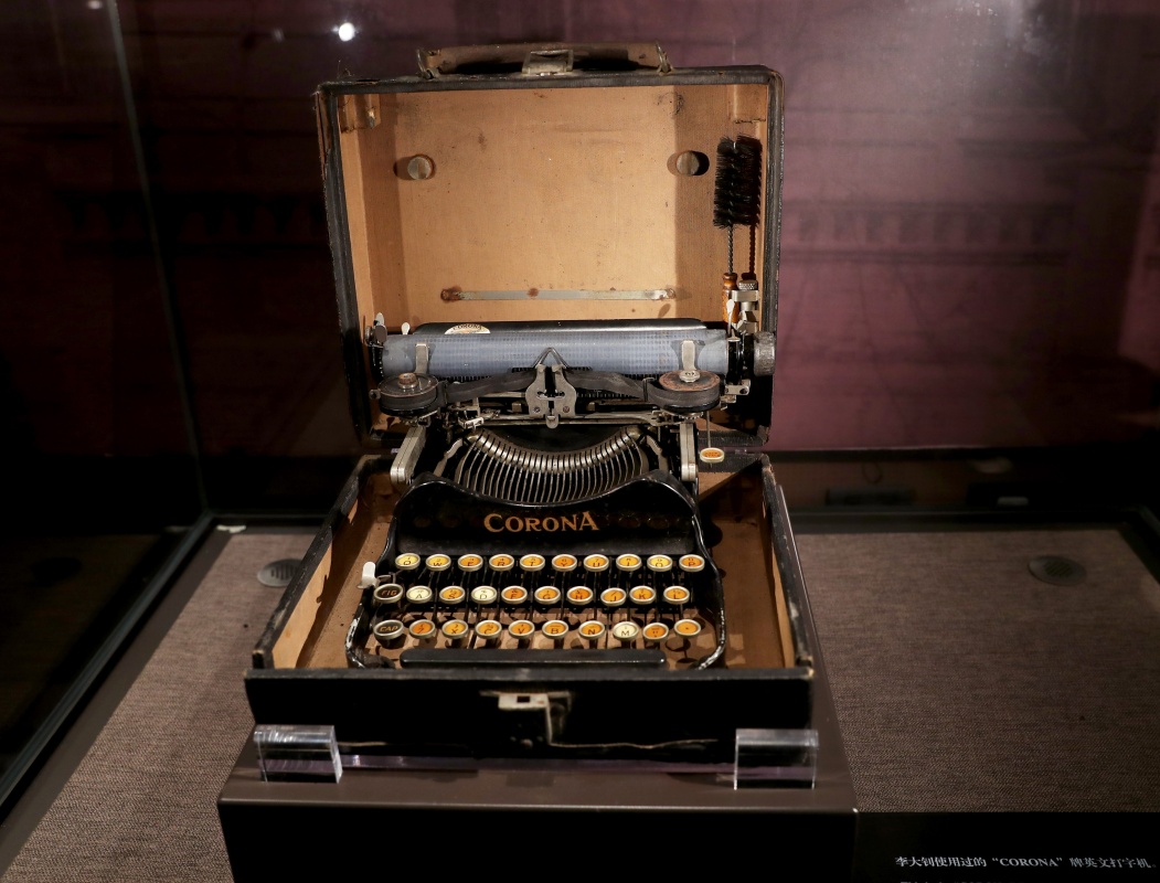 这是中共一大会址纪念馆内展示的李大钊用过的打字机(2020年11月13日摄)。新华社记者 刘颖 摄