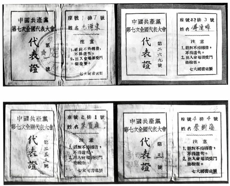 中共“七大”代表毛泽东等人的代表证。 新华社图片