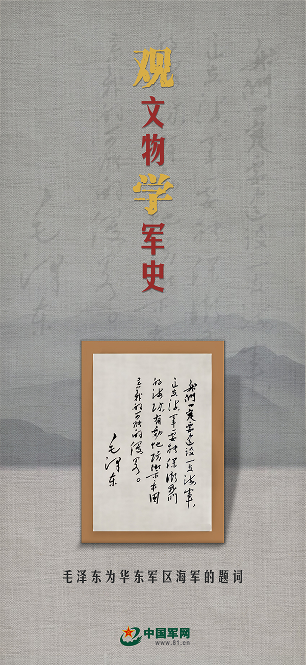 中国人民解放军海军博物馆展厅内,陈列着一件珍贵的文物。它长44厘米、宽63厘米,为1949年8月28日,毛泽东为华东军区海军的题词。