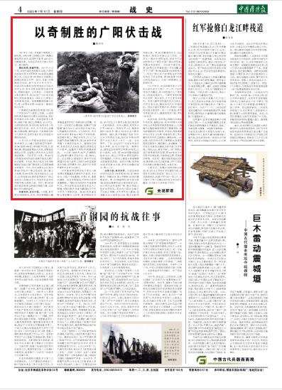 1937年11月初,为阻滞日军西进,八路军第115师与第129师在山西广阳地区接连两次设伏,取得歼灭日军1200余人的辉煌战果。此战是平型关大捷之后的又一重大胜利。