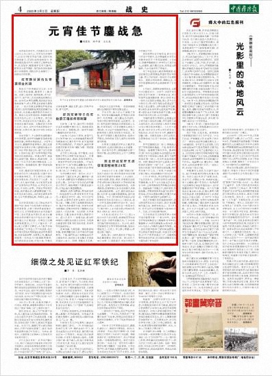 在革命战争年代,为推翻压在中国人民头上的三座大山,我军在党的领导下,以无往不胜的英雄气概、坚韧不拔的革命毅力、灵活机动的战略战术、英勇顽强的战斗作风,夺取了土地革命战争、抗日战争、解放战争的伟大胜利。即使在元宵节期间,他们依然在枪林弹雨中冲锋陷阵,用热血和生命谱写了一曲曲壮丽的凯歌。
