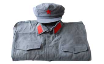 赵品三将新军装设计为:上身中山装,下身西装裤,衣领上缝两块红布领章。